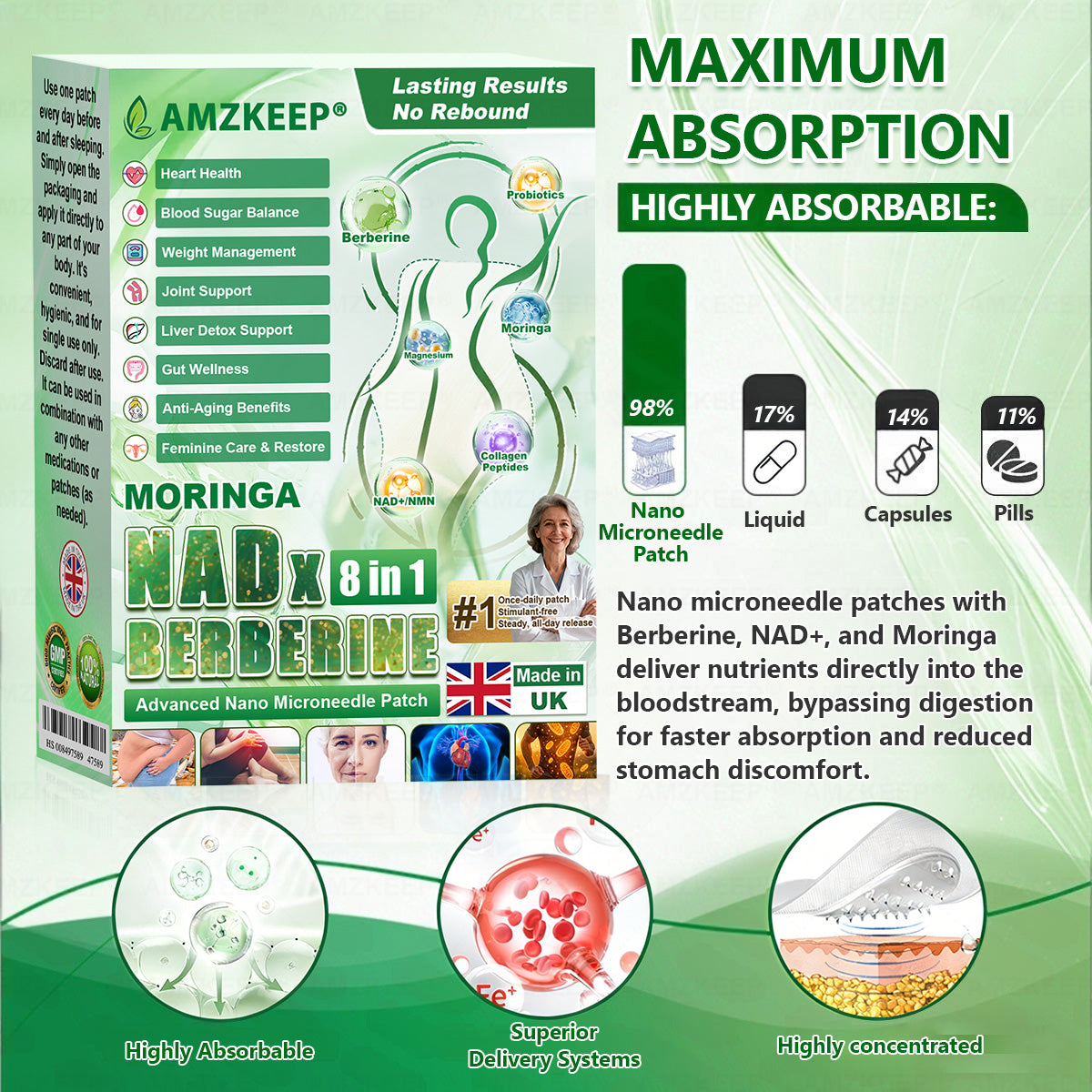 đđđđđđđÂŽ đđđŤđđđŤđ˘đ§đ Ă đđ¨đŤđ˘đ§đ đ đđĽđ˘đŚ & đđđđĽđđĄđ˛ đđđ§đ¨ đđ˘đđŤđ¨đ§đđđđĽđ đđđđđĄ was developed through more than 20 years of research by a multidisciplinary team of over 30 experts. Each patch incorporates an ultra-fine microneedle architecture measuring approximately one-seventh the thickness of a human hair, designed to ensure a smooth and virtually painless application. The formulation contains highly concentrated natural bioactive compounds, up to 20-fold higher than conventional market levels, including Moringa and Berberine, which act synergistically to support healthy glycemic responses, appetite regulation, and lipid metabolism, thereby promoting gradual and sustainable weight management. Enriched with NAD+, the patch further supports skin firmness and structural resilience during body-weight fluctuations, helping maintain a lean appearance without compromising comfort or aesthetics. Additional high-efficacy components contribute to the support of immune function, digestive health, gut balance, womenâs health, daily energy levels, and fatigue reduction, collectively promoting a more youthful and resilient physiological state from within. Manufactured in GMP-certified facilities that comply with both U.S. and EU quality standards, this needle-free, science-driven solution provides a safe and comprehensive approach to effective weight management and long-term metabolic health, designed to work in harmony with the body rather than against it.